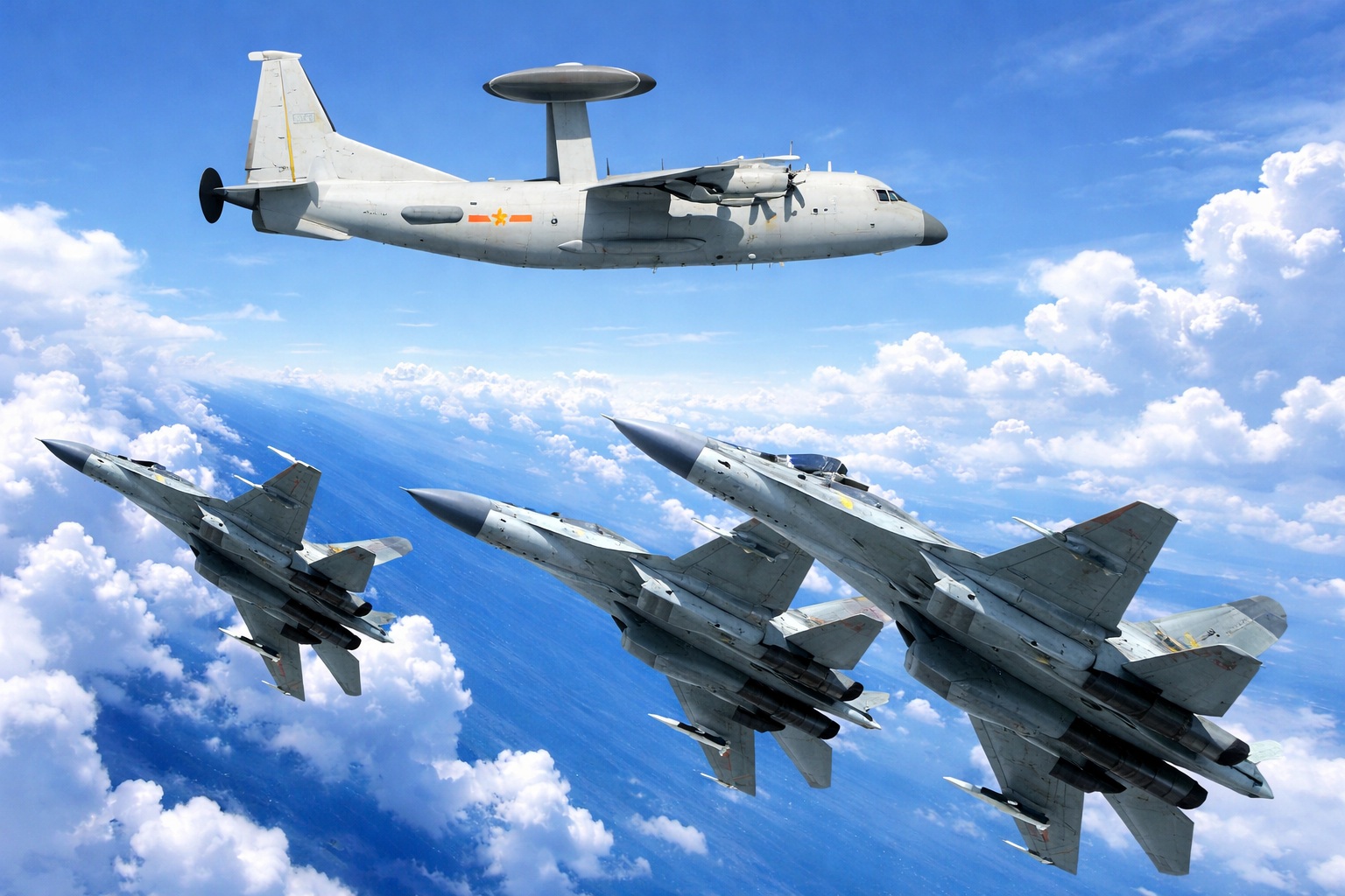 投入された機体には、殲-10(J-10)、殲-16(J-16)といった主力戦闘機や、空警-500(KJ-500)早期警戒管制機が含まれており、さらに無人機も広範囲に投入された。航跡図によれば、軍用機は台湾海峡の中間線沿いで活発に動き、一部は台湾本島の応変区域外縁に沿って南東空域まで回り込むなど、挑発の範囲を拡大させている。また、北部の防空識別圏(ADIZ)の外縁では、爆撃機2機が徘徊する様子も確認されており、台湾全土を包囲するような軍事的デモンストレーションを展開した。